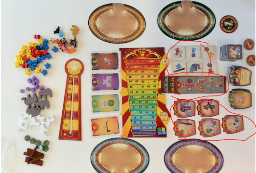公演の段階では、まずミープルをサーカスリングの外に置いたまま始まります。