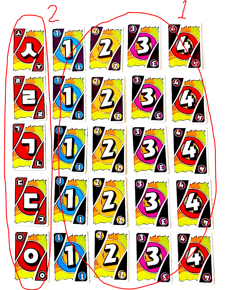 一番最初に正解を叫んだプレイヤーは該当子音カードの列で4点カードを受け取り、